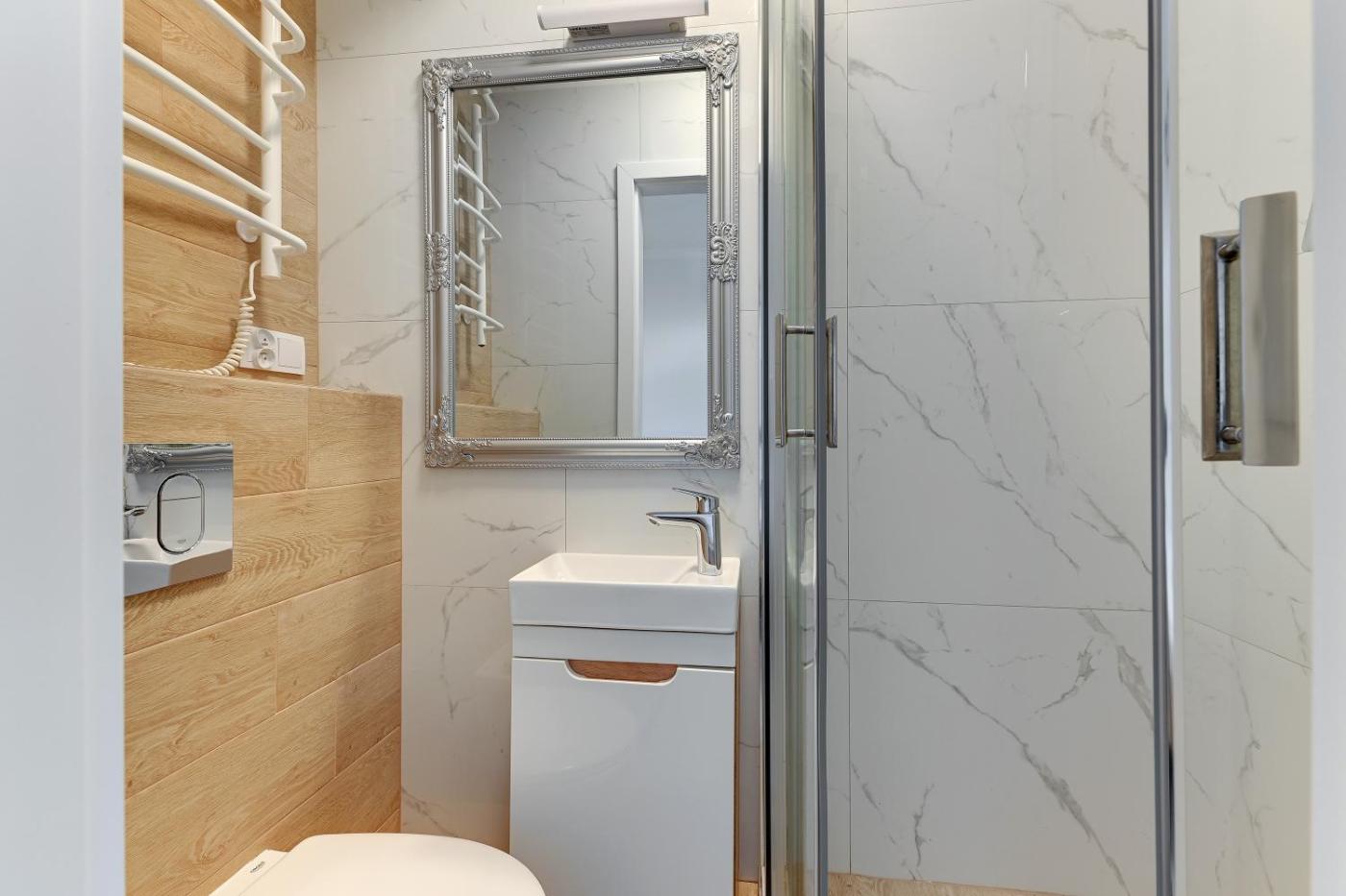 Apartament z 1 sypialnią. The apartment features 1 separate bedroom and 1 bathroom with a walk-in shower. Featuring a balcony with ancourtyard view, this apartment also offers heating and a TV with satellite channels. The unit offers 1 bed. Apartament - 2 osobowy. Powierzchnia pokoju ok.: 15 mkw.