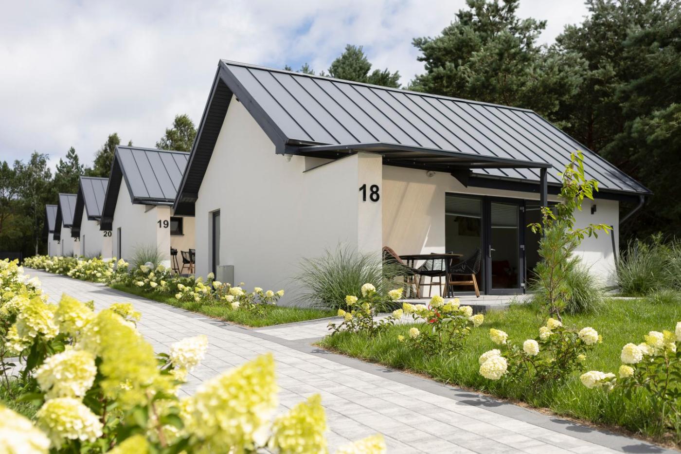 Domek z 2 sypialniami. Domek ten dysponuje prywatnym wejściem, salonem, 2 oddzielnymi sypialniami oraz łazienką z prysznicem i suszarką do włosów. W kuchni przygotowano płytę kuchenną, lodówkę, przybory kuchenne i kuchenkę mikrofalową. Goście mogą korzystać z grilla. Domek ten jest przystosowany dla osób poruszających się na wózkach inwalidzkich i oferuje dźwiękoszczelne ściany, część wypoczynkową z telewizorem z płaskim ekranem oraz kabinę prysznicową bez barier. W tej opcji zakwaterowania dostępne są 4 łóżka. Domek - 6 osobowy. Powierzchnia pokoju ok.: 42 mkw. ;