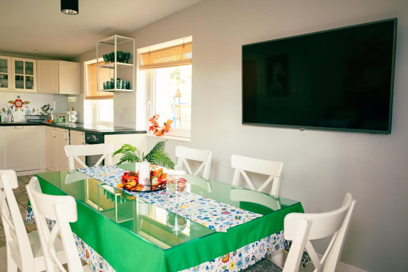 Dom z 3 sypialniami. This holiday home provides a fireplace. The holiday homes kitchenette, which features kitchenware, is available for cooking and storing food. A seating area with a flat-screen TV, a washing machine and a terrace are featured in this spacious holiday home. The unit offers 6 beds. Dom wakacyjny - 10 osobowy. Powierzchnia pokoju ok.: 120 mkw.