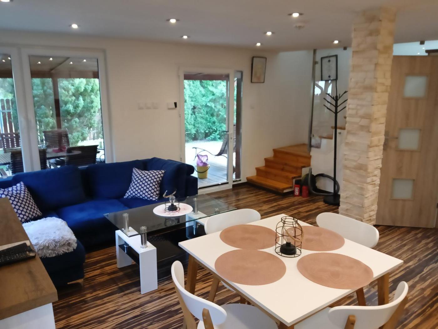 Dom z 2 sypialniami. This holiday homes special feature is the fireplace. Featuring a private entrance, this air-conditioned holiday home comprises a kitchen, 2 bedrooms and 1 bathroom with a shower and a hairdryer. Guests will find a stovetop, a refrigerator, kitchenware and an oven in the well-fitted kitchen. The holiday home also provides guests with a barbecue. Boasting a terrace with lake views, this holiday home also provides a seating area and a flat-screen TV with cable channels. The unit offers 5 beds. Dom wakacyjny - 6 osobowy. Powierzchnia pokoju ok.: 80 mkw.