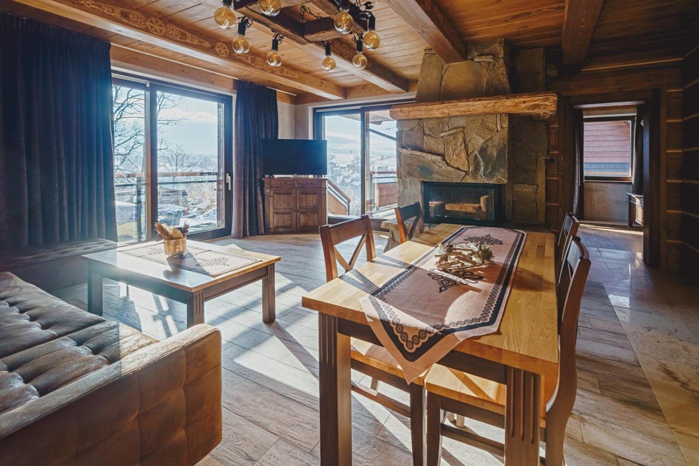 Apartament typu Deluxe. The sauna and fireplace are the standout features of this apartment. This spacious apartment includes 1 living room, 3 separate bedrooms and 2 bathrooms with a bath and a shower. In the well-fitted kitchen, guests will find a stovetop, a refrigerator, a dishwasher and kitchenware. The apartment has parquet floors, a seating area with a flat-screen TV, a washing machine, a private entrance as well as mountain views. The unit has 4 beds. Apartament - 8 osobowy. Powierzchnia pokoju ok.: 90 mkw. ;